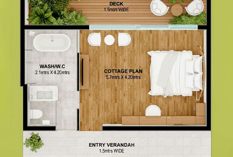 Every detail is thoughtfully planned to blend comfort with environmental sensitivity. The architecture, materials, and overall experience are guided by a philosophy of minimal impact and maximum harmony.